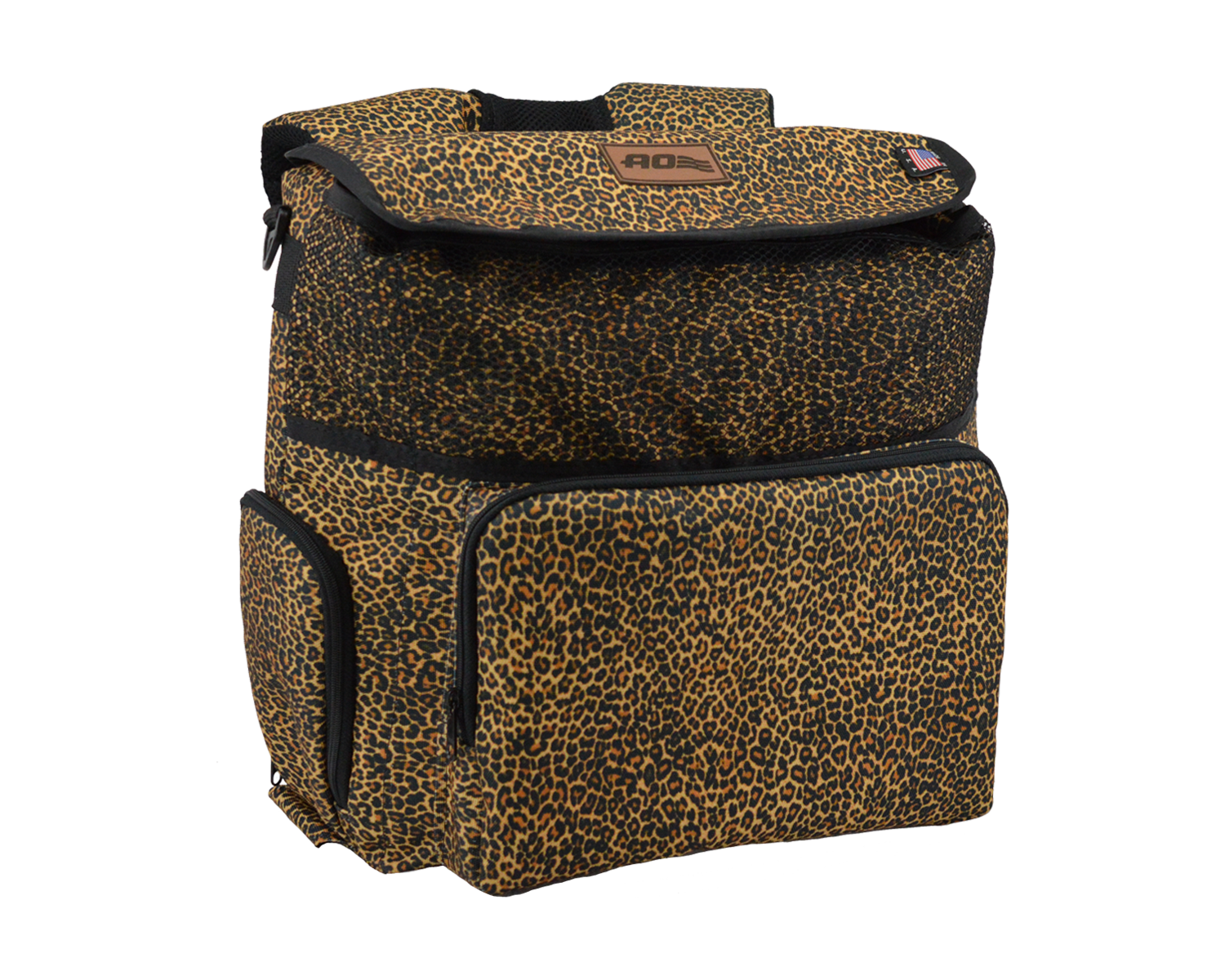 AO's Limited Series Leopard print cooler is made from a custom printed 600 denier polyester canvas with a heavy duty backing that is tear resistant and water repellent. We have also upgraded to a TPU coated reverse zipper. This gives the cooler a more airtight, water repellent seal and sleeker look. You will not find these d-rings on any of our standard series. Upgraded d-rings offer a stronger tie down area as well as an additional smaller area to attach your favorite bottle opener or keys. We have added a padded shoulder strap in matching fabric and accent color for a comfortable haul and double zipper pull tabs for easier access.